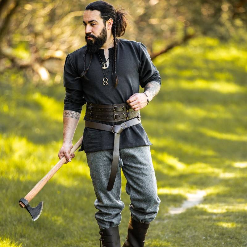 Cinch your waist with authentic medieval style. This ring belt features traditional metal rings linked along a sturdy leather or fabric band, delivering both historical charm and practical functionality. Perfect for Renaissance fairs, historical reenactments, or anyone seeking to add period-accurate flair to their wardrobe. The adjustable design ensures a comfortable fit for various sizes, while the distinctive ring detailing makes a bold statement. Whether you're a history enthusiast or fashion-forward individual, this ring belt transforms any outfit into something truly remarkable.